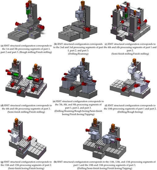 As shown in Figure 17, several RMT configuration schemes were taken as cases, which were generated by the above three processing plans corresponding to part 1, part 2, and part 3, respectively.
