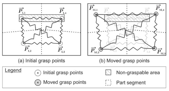 Figure 3a). If the position of any of the grasp points is changed, the virtual springs are elongated accordingly (