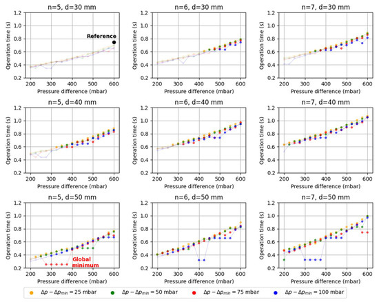 . Finally, the most efficient set of gripper count, gripper diameter, target pressure difference and minimum pressure difference [