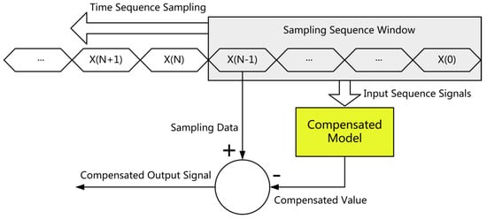 where represents one sample time, represents the length of the filtered sequence and represents the filtered data. The sampled data are filtered and sent to the compensation model to output the compensated value.