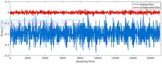 The collected data are shown in Figure 5, which shows that temperature has an effect on the zero-bias output. The proposed solution works at a fixed temperature, while the error compensation effects at different temperatures are also carried out to show the solution effectiveness at different temperatures and the potential for error compensation in the full temperature range. The following analysis was carried out at a temperature of 22.6 °C, and the results were compared with related works. The data sets were divided into training sets and test sets in accordance with the proportion of 6:4. The first 60% of the collected data were used for training, and the remaining 40% of the data were used for scheme evaluation.