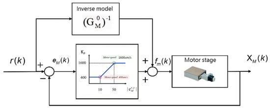 for control design. Because is first-order, we only need to apply a zero-order control to achieve arbitrary pole placement. Therefore, we designed a gain-scheduling control with command feedforward, as shown in Figure 7, for the motor stage.