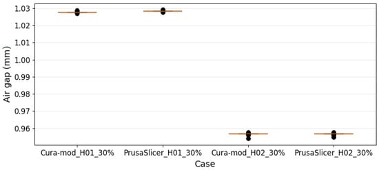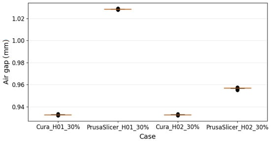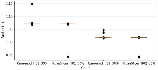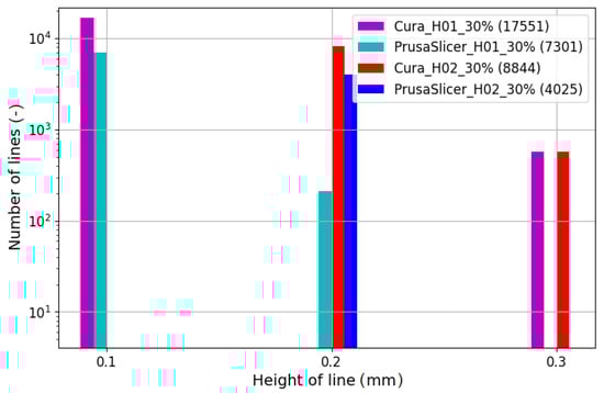 3.2. Result Comparison for the Slicers—The Case of the Modified Parameters in the Cura Software
