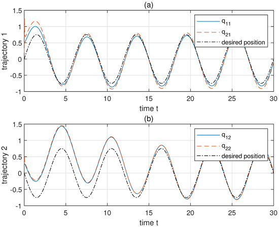 The tracking performance of link position. (a,b) show the trajectories of two links, respectively.