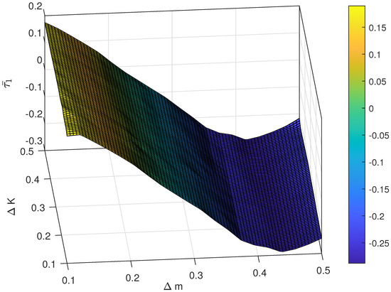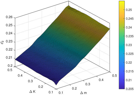 The relationship between different magnitude of uncertainty and the control performance is also investigated. For instance, the range of is chosen as , and the range of is set as . The result of the average following error and with respect to different pairs of and are shown in Figure 7 and Figure 8 and the average control cost and with respect to different pairs of and are shown in Figure 9 and Figure 10, respectively. Obviously, the proposed control has strong robustness since the average following error and the average control cost varies in a small range when the magnitude of uncertainty changes.