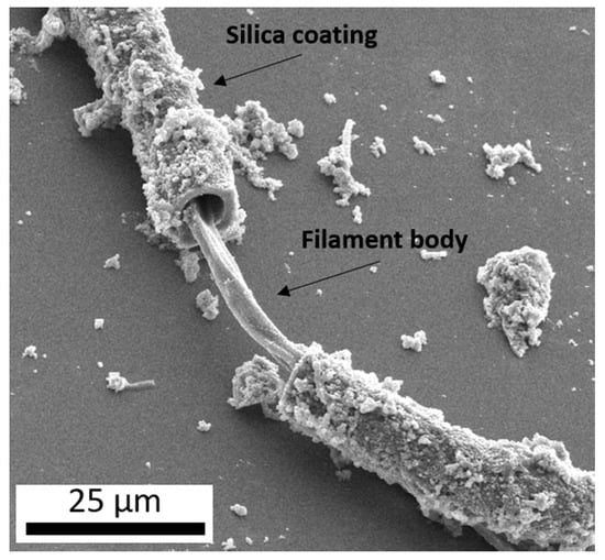 In many terrestrial hydrothermal systems, spring water is supersaturated with respect to amorphous silica (SiO2) [4]. Silica is also thought to play an important role in synthesizing important prebiotic molecules, specifically when subjected to dehydration and rehydration cycles [5,6,7] which can precipitate out of solution as the water temperature drops with distance from the source. This silica precipitate can entomb and preserve microbial life [8], but can also be observed to be intimately associated with extant microbes (Figure 1) through silica-coatings [9,10,11]. While the exact functions/benefits of these coatings are not completely understood, they may provide some degree of UV protection as silica can shield from intense UV due to a high radiation absorbance [12], a similar strategy employed by many microbial communities in hot spring systems which thrive as endolithic (within-rock) communities boring into the surface of siliceous sinter [13,14], or as hypolithic (under-rock) communities living under millimeters of loose siliceous sinter [15].