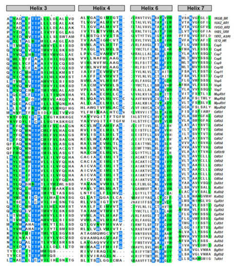 | MspRh1 | E140 | T144 | T145 | I151 | D284 | F268 | Q276 | K288 |