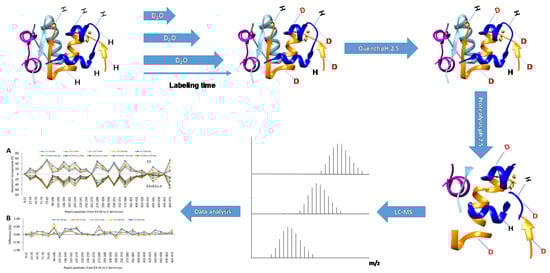 - Hodge, E.A.; Benhaim, M.A.; Lee, K.K. Bridging protein structure, dynamics, and function using hydrogen/deuterium-exchange mass spectrometry. Protein Sci. 2020, 29, 843–855. [Google Scholar] [CrossRef] [PubMed]
