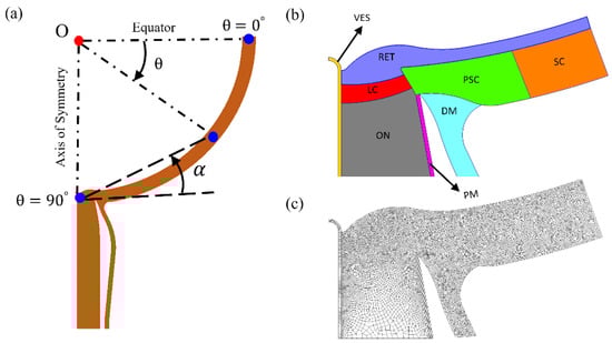 - Girard, M.J.; Downs, J.C.; Burgoyne, C.F.; Suh, J.-K.F. Peripapillary and posterior scleral mechanics—part I: Development of an anisotropic hyperelastic constitutive model. J. Biomech. Eng. 2009, 131. [Google Scholar] [CrossRef]