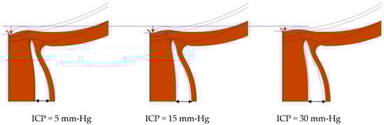 - Moss, H.; Mehr, J.A.; Hatami-Marbini, H. Effect of posterior optic nerve and sheath boundary conditions on globe deformation in high intracranial pressure (ICP) states. Investig. Ophthalmol. Vis. Sci. 2019, 60, 5228. [Google Scholar]