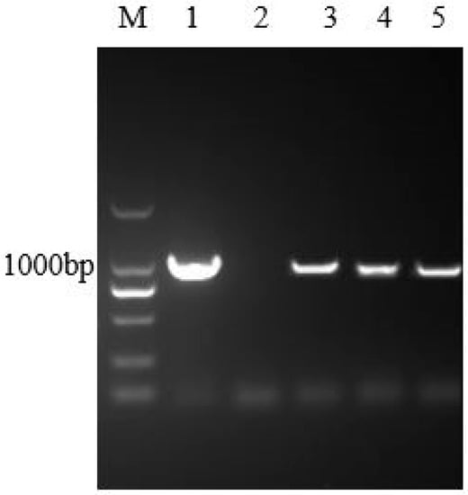 Identification of the transgenic hairy roots of Solanum nigrum L. using polymerase chain reaction (PCR). M: DNA marker 2000; Lane 1: the pUC57 plasmid; Lane 2: sterile water; Lane 3~5: DNA extracted from transgenic hairy roots of Solanum nigrum L. expressing the IRT1 gene.