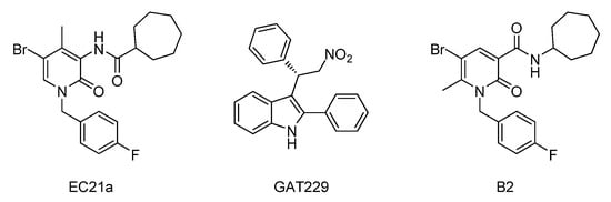 | EC21a | N-[5-bromo-1,2-dihydro-1-(4′-fluorobenzyl) -4-methyl-2-oxo-pyridin-3yl]cycloheptanecarboxamide |