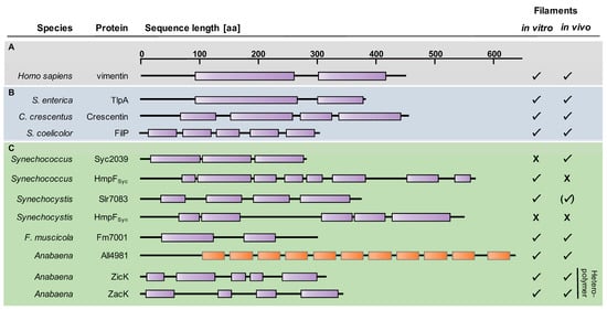 - Springstein, B.L.; Woehle, C.; Weissenbach, J.; Helbig, A.O.; Dagan, T.; Stucken, K. Identification and characterization of novel filament-forming proteins in cyanobacteria. Sci. Rep. 2020, 10, 1894. [Google Scholar] [CrossRef]