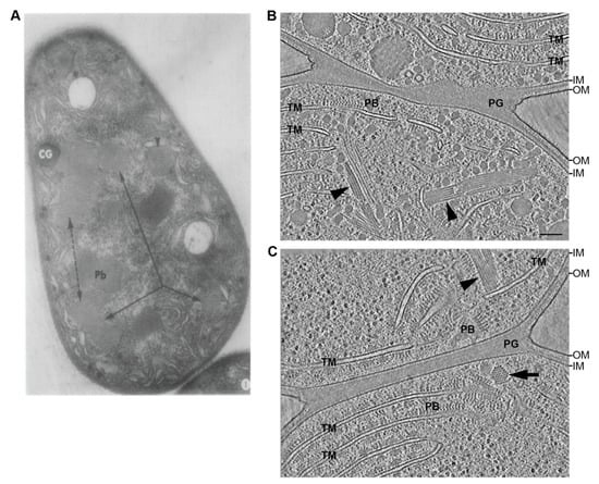 - Jensen, T.E.; Ayala, R.P. The fine structure of striated microtubules and sleeve bodies in several species of Anabaena. J. Ultrasruct. Res. 1976, 57, 185–193. [Google Scholar] [CrossRef]