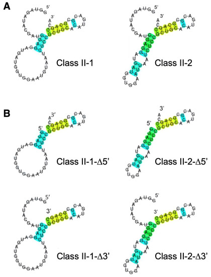 3.3. Secondary Structure of Class II-3′-21nt Analyzed by SHAPE