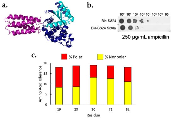 The following are available online at https://www.mdpi.com/2075-1729/10/2/9/s1, Figure S1: Validation of β-lactamase stability selection for de novo proteins. Figure S2. Raw data for the structural tolerance of S-824. Figure S3. Amino acid percentages for variable codons.