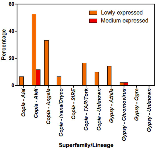 - Mascagni, F.; Vangelisti, A.; Usai, G.; Giordani, T.; Cavallini, A.; Natali, L. A computational genome-wide analysis of long terminal repeats retrotransposon expression in sunflower roots (Helianthus annuus L.). Genetica 2020, 148, 13–23. [Google Scholar] [CrossRef]