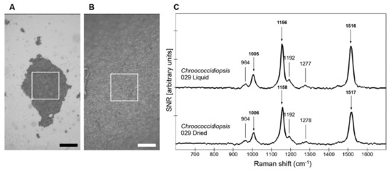 3.3. Preservation of Carotenoid Raman Signal in Dried Cells