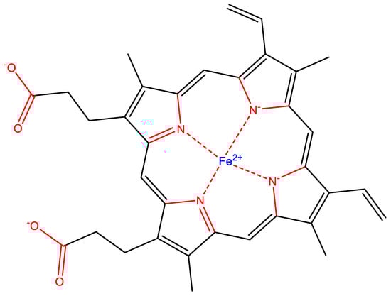 Scaffolding elements and heteroatoms build biochemicals. Scaffolding elements are responsible for creating the overall structure and shape of molecules, while heteroatoms enable necessary chemical diversity, reactivity and directional bonding. For example, in heme (a crucial molecule used by virtually all life on Earth), carbon is a scaffolding element and O and N elements are heteroatoms that allow for the necessary reactivity and directional bonding required for coordination of catalytically important iron ion (Fe2+). Heteroatoms and bonds to them are colored red, scaffold elements (carbon) and bonds are colored black.