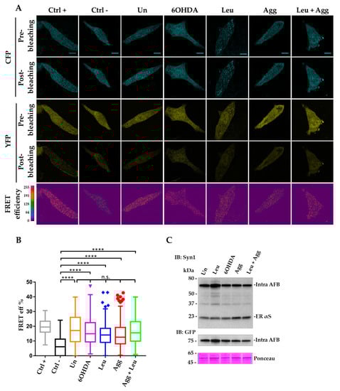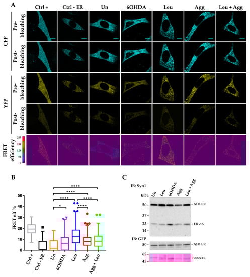 3.3. Inter-AFBs Expression in i36 Reveals Early αS Aggregation in the ER under Stress Stimuli