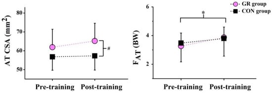 | CSA (mm2) | 61.9 ± 9.5 # | 65.2 ± 9.4 # | 6.3% | 56.8 ± 7.1 | 57.3 ± 7.5 | 1.0% | 0.081 | 0.027 | 0.216 |