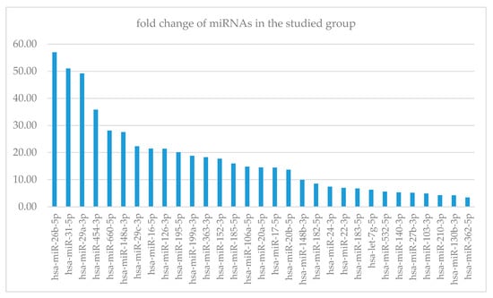 Fold change of miRNA concentration between GD group and control. X-axis—miRNAs, Y-axis—fold change.