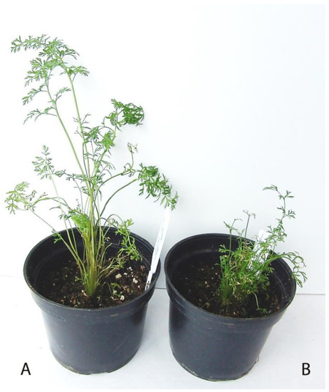 - Kiszczak, W.; Kowalska, U.; Kapuścińska, A.; Burian, M.; Górecka, K. Comparison of methods for obtaining doubled haploids of carrot. Acta Soc. Bot. Pol. 2017, 86, 35–47. [Google Scholar] [CrossRef][Green Version]