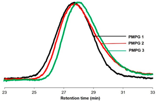 GPC curves of PMPG-1, PMPG-2, and PMPG-3.