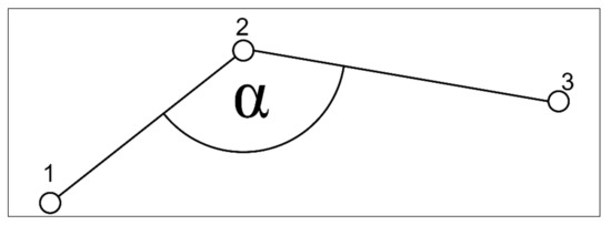 Measured angles during movement are taken from three consecutive coordinates based on the motility behavior of the microbes: The angles here are the angles that form the two sides and . 1 is the coordinate of the microbe in the first video frame, 2 in the following one, and 3 in the one thereafter (see Figure 2).