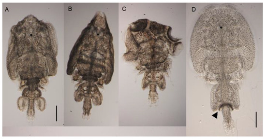- Hamre, L.A.; Eichner, C.; Caipang, C.M.A.; Dalvin, S.T.; Bron, J.E.; Nilsen, F.; Boxshall, G.; Skern-Mauritzen, R. The Salmon Louse Lepeophtheirus salmonis (Copepoda: Caligidae) Life Cycle Has Only Two Chalimus Stages. PLoS ONE 2013, 8, e73539. [Google Scholar] [CrossRef]