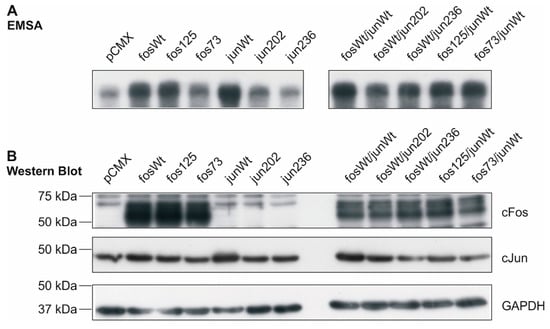 2.3. DNA Binding Capacity of Expressed cFos and cJun Mutants