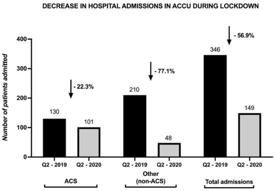 - De Filippo, O.; D’Ascenzo, F.; Angelini, F.; Bocchino, P.P.; Conrotto, F.; Saglietto, A.; Secco, G.G.; Campo, G.; Gallone, G.; Verardi, R.; et al. Reduced Rate of Hospital Admissions for ACS during Covid-19 Outbreak in Northern Italy. N. Engl. J. Med. 2020, 383, 88–89. [Google Scholar] [CrossRef]