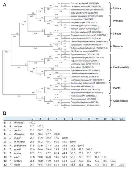 - Clayton, C.; Adams, M.; Almeida, R.; Baltz, T.; Barrett, M.; Bastien, P.; Belli, S.; Beverley, S.; Biteau, N.; Blackwell, J.; et al. Genetic nomenclature for Trypanosoma and Leishmania. Mol. Biochem. Parasitol. 1998, 97, 221–224. [Google Scholar] [CrossRef]