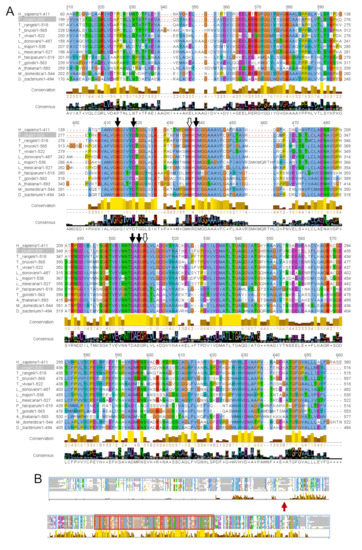 - Waterhouse, A.M.; Procter, J.; Martin, D.; Clamp, M.; Barton, G.J. Jalview Version 2—A multiple sequence alignment editor and analysis workbench. Bioinformatics 2009, 25, 1189–1191. [Google Scholar] [CrossRef]
