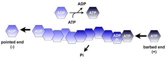 45. Kudryashov, D.S.; Reisler, E. ATP and ADP actin states. Biopolymers 2013, 99, 245–256. [Google Scholar] [CrossRef]