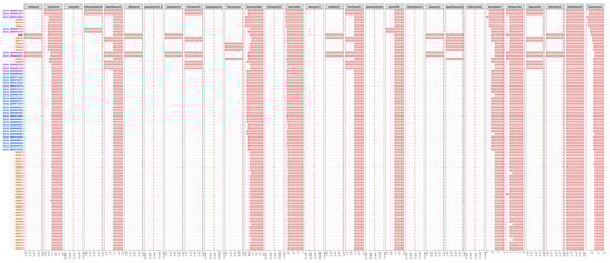 To identify potential antibiotic resistance genes in the genomic sequences of these serotype 9 strains, the protein sequence alignment of antibiotic resistance genes in the Antibiotic Resistance Genes database (ARDB, http://ardb.cbcb.umd.edu/, accessed on 26 November 2021) and serotype 9 strain genomic sequences was conducted using BlastP (E-value < 1 × 10−5) []. Finally, the statistical results of various antibiotic resistance genes were visualized using the ggplot2 drawing package in R.