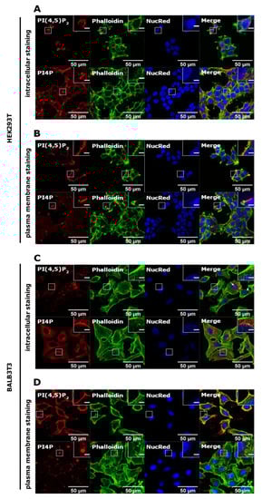 3.1. PI(4,5)P2 and PI4P Localize at Different Cellular Compartments in HEK293T and BALB3T3 Cells