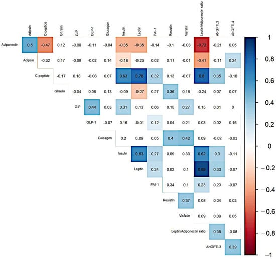 - Vasilenko, M.A.; Kirienkova, E.V.; Skuratovskaia, D.A.; Zatolokin, P.A.; Mironyuk, N.I.; Litvinova, L.S. The Role of Production of Adipsin and Leptin in the Development of Insulin Resistance in Patients with Abdominal Obesity. Dokl. Biochem. Biophys. 2017, 475, 336–341. [Google Scholar] [CrossRef] [PubMed]