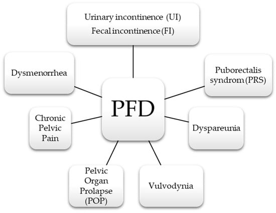 It is not the purpose of this review to describe each of the PFM in detail. However, in many places of this review these dysfunctions are mentioned. That is why we allow ourselves in the form of a graph to list the most common disturbances in the PF area, which shows Figure 6.