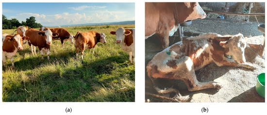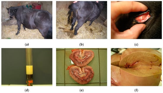 Signs of fatty liver syndrome in dairy cows: (a) obese cows during dry period diagnosed with fatty liver syndrome; (b) excessive (or rapid) body condition score loss in the second week after calving. Source: authors’ private collection.