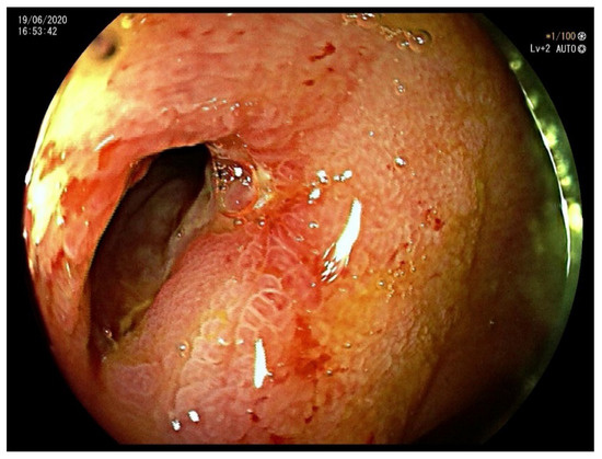 - Christianakis, E.; Pashalidis, N.; Kokkinou, S.; Pitiakoudis, M.; Mplevrakis, E.; Chorti, M.; Rizos, S.; Filippou, D. Acute jejunoileal obstruction due to a pseudopolyp in a child with undiagnosed crohn disease: A case report. J. Med. Case Rep. 2008, 2, 54. [Google Scholar] [CrossRef][Green Version]