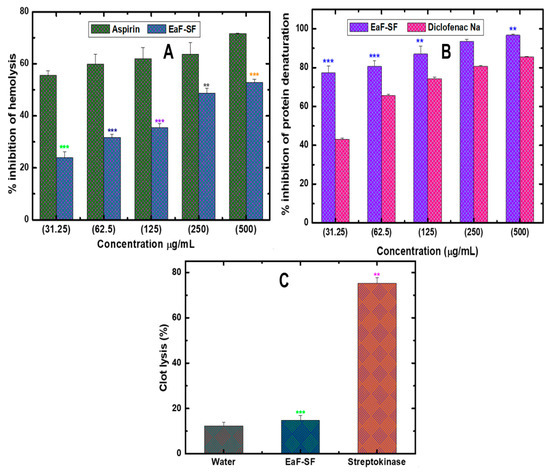 2.13. In Vitro Thrombolytic Activity