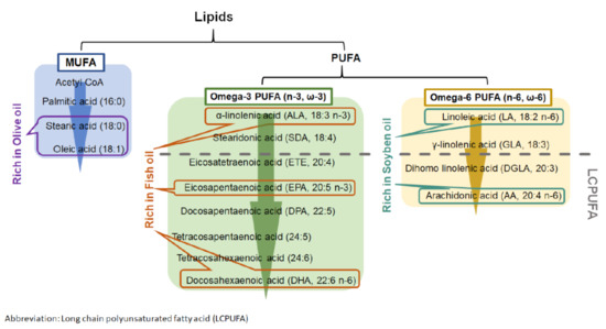 3.1.1. Polyunsaturated Fatty Acids (PUFAs) and Long-Chain Polyunsaturated Fatty Acid (LCPUFAs)