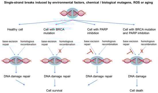 - Toss, A.; Cortesi, L. Molecular Mechanisms of PARP Inhibitors in BRCA-related Ovarian Cancer. J. Cancer Sci. Ther. 2013, 5, 409–416. [Google Scholar] [CrossRef]