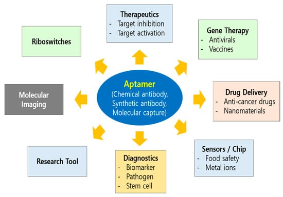 - Zhang, Y.; Lai, B.S.; Juhas, M. Recent Advances in Aptamer Discovery and Applications. Molecules 2019, 24, 941. [Google Scholar] [CrossRef]