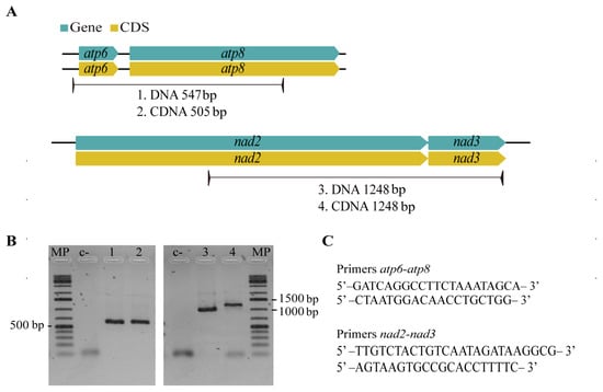 2.6. RT–PCR Assays for Mitochondrial Gene Pairs of P. fijiensis