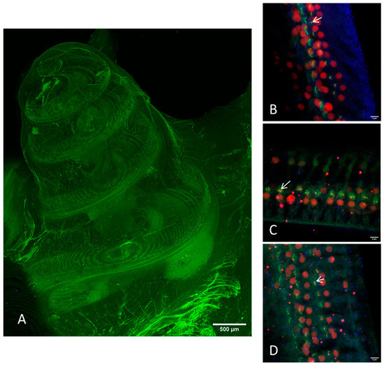 - Montgomery, S.C.; Cox, B.C. Whole mount dissection and immunofluorescence of the adult mouse cochlea. J. Vis. Exp. 2016, 2016, e53561. [Google Scholar] [CrossRef]