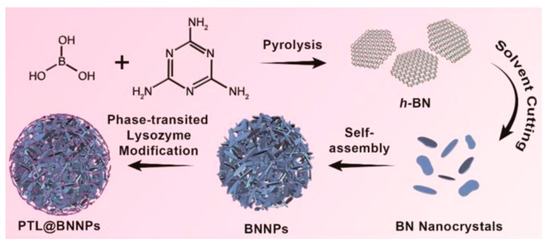 Schematic representation of the preparation of BNNPs coated with phase-transited lysozyme. Reprinted with permission from Li L et al. ACS Nano. 2019;13(12):13843-52 [97]. Copyright (2019) American Chemical Society.