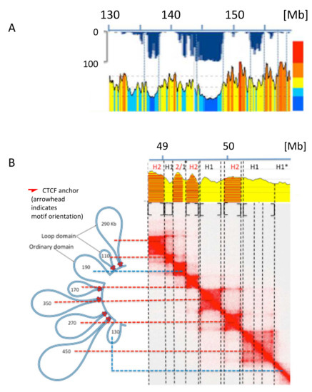 - Dixon, J.R.; Selvaraj, S.; Yue, F.; Kim, A.; Li, Y. Topological domains in mammalian genomes identified by analysis of chromatin interactions. Nature 2012, 485, 376–380. [Google Scholar] [CrossRef] [PubMed]