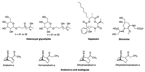 - Hemscheidt, T.; Rapala, J.; Sivonen, K.; Skulberg, O.M. Biosynthesis of Anatoxin-a in Anabaena flos-aquae and Homoanatoxin-a in Oscillatoria formosa. J. Chem. Soc. Chem. Commun. 1995, 13, 1361–1362. [Google Scholar] [CrossRef]